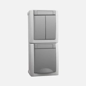 Pacific IP54 Weather Proof 2-gang One-way Switch + Socket 2P+E, Vertical 10AX/16A, 250V-, Full Set, WPTC4853-2